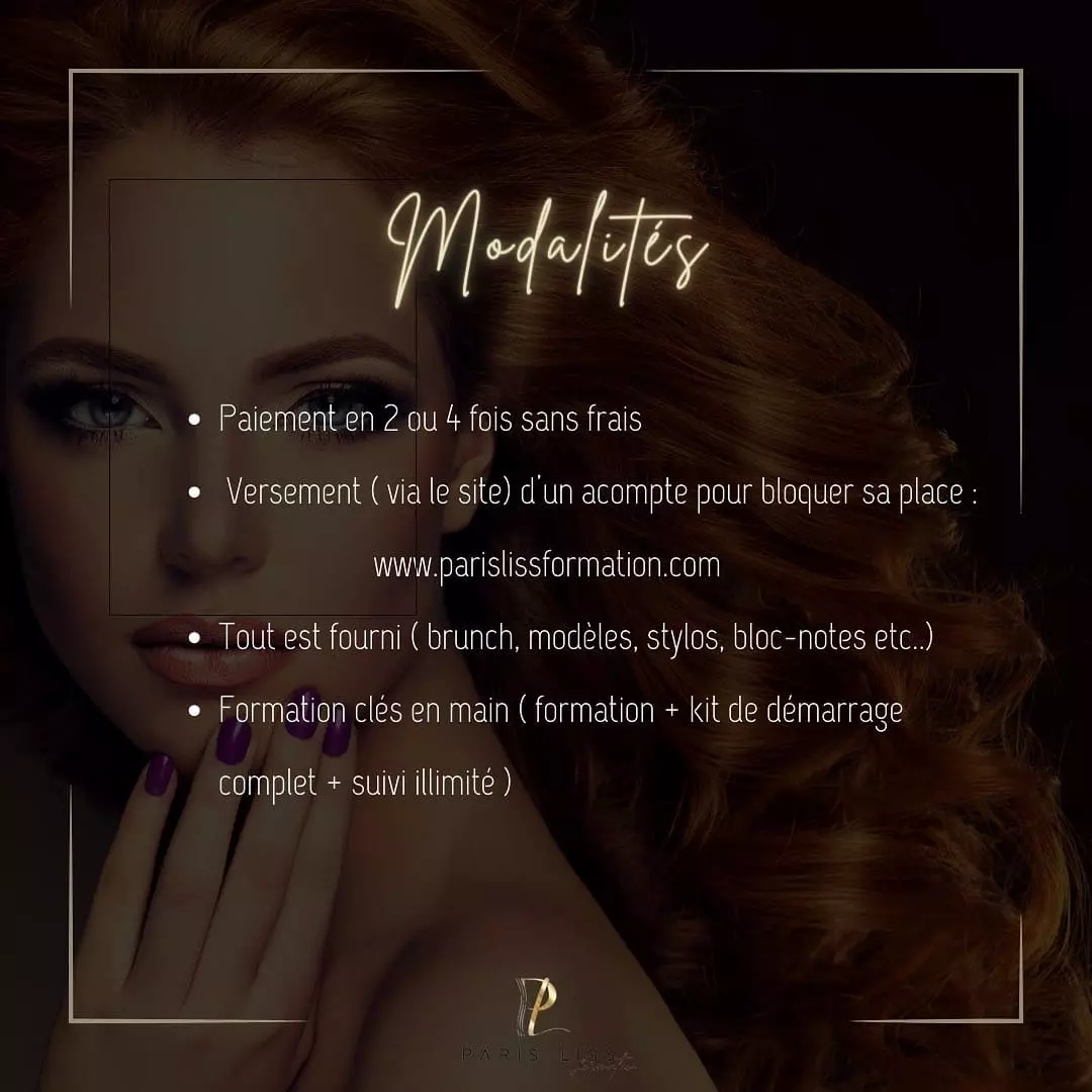 👉 Les formations se déroulent à Paris en une journée. Tu seras formé sur le lissage Brésilien avec et sans formol , le lissage tanin, les lissages botoxés , le lissage français , le lissage Nano indien, le lissage karité, lissages sur mesure, le Botox, sur la coupe des pointes et le photon Therapy .